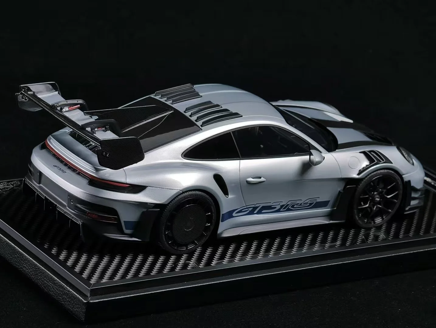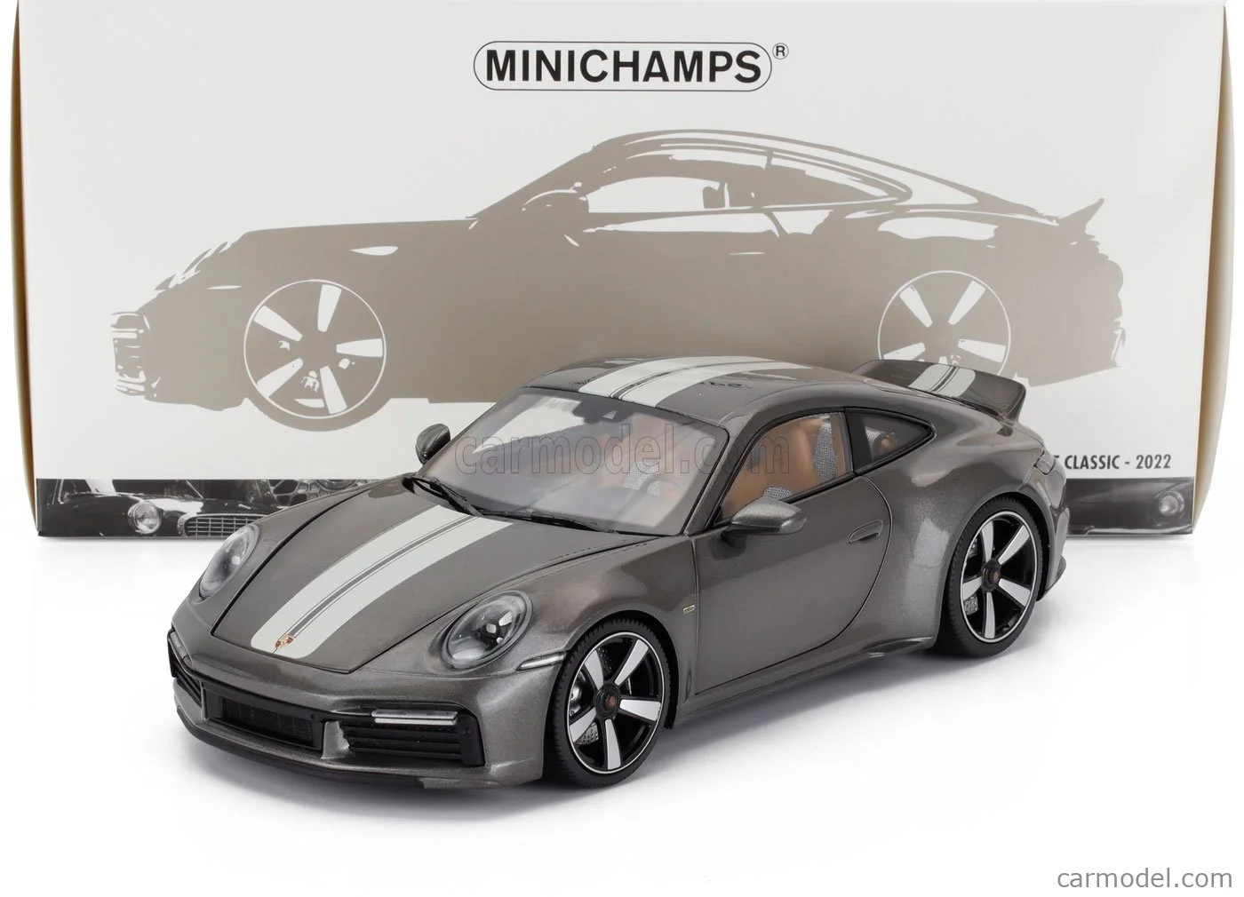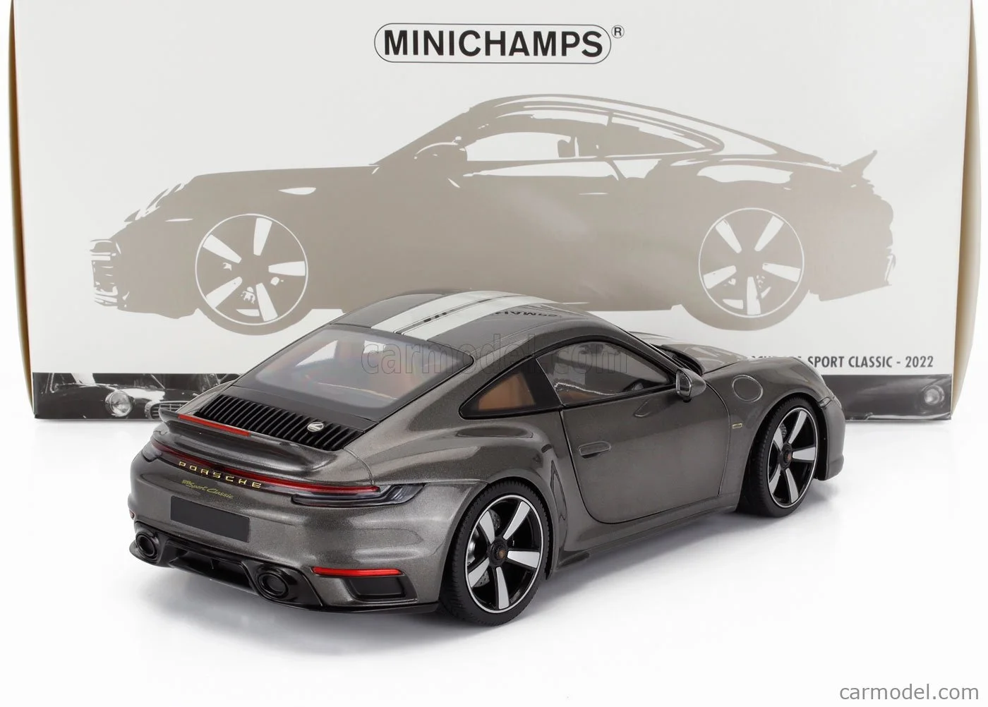 MINICHAMPS 1/18 PORSCHE 911 (992) GT3 RS – 2022 – GREY MET. W/WEISSACH PACKAGE W BLUE DECOR WHEELS SINGLE NUMBERED - L.E. 649 pcs.
